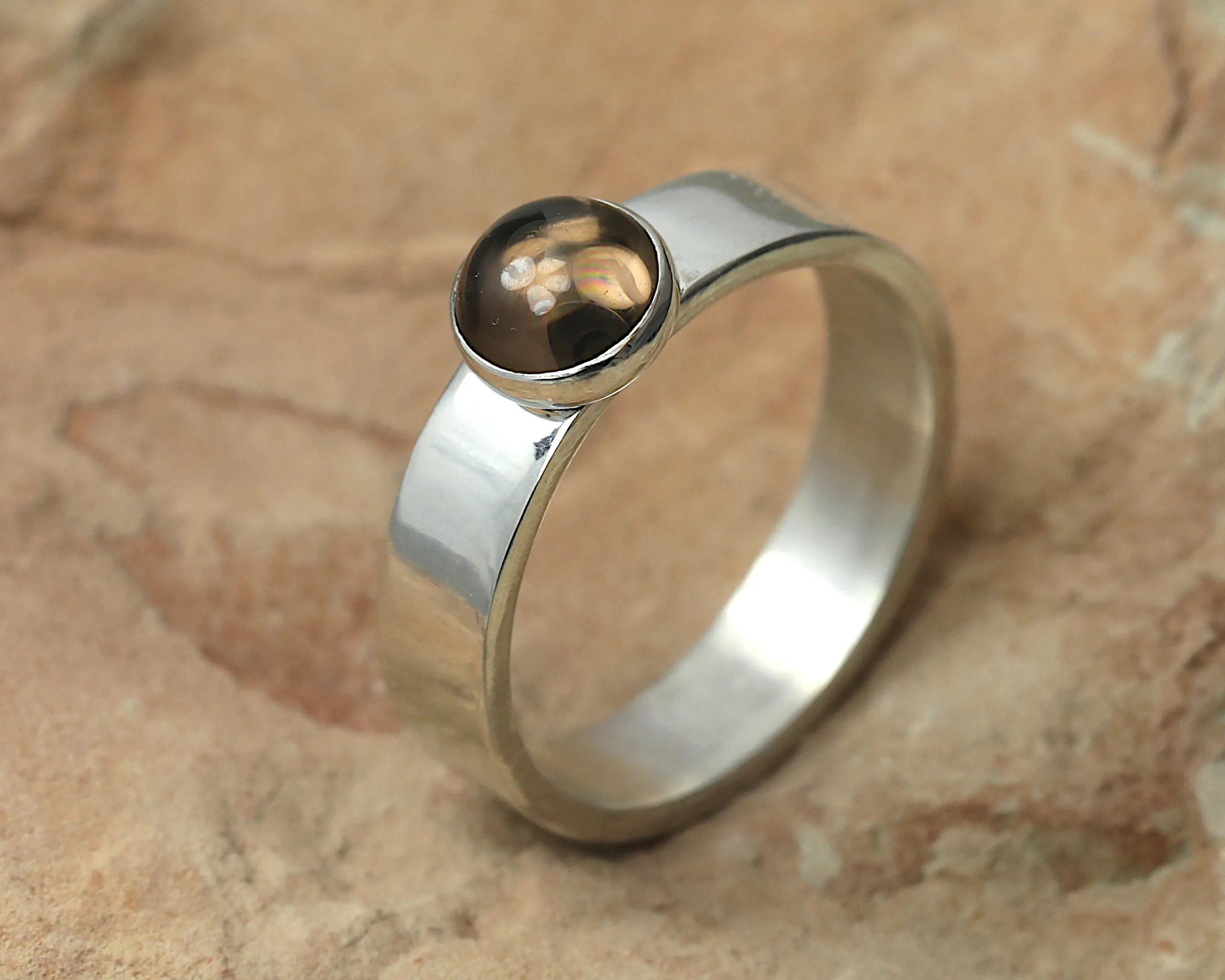 Formaat: saffier ca. 2 mm diameter, ringbandbreedte 3 mm.